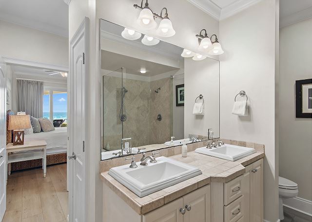 Fourth Bedroom: Two queen beds with a connected bathroom (also opens to hallway).