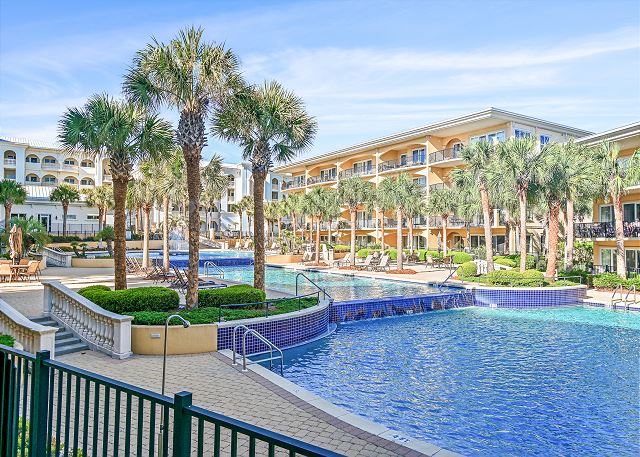 8,000 sq. ft. three-tiered pool with fountains & waterfalls (not heated)